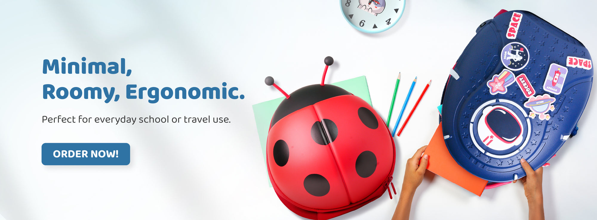Perfectly sized for students, with sections for books, stationery, and lunch boxes. Lightweight, comfortable, and designed to make school fun and colorful.