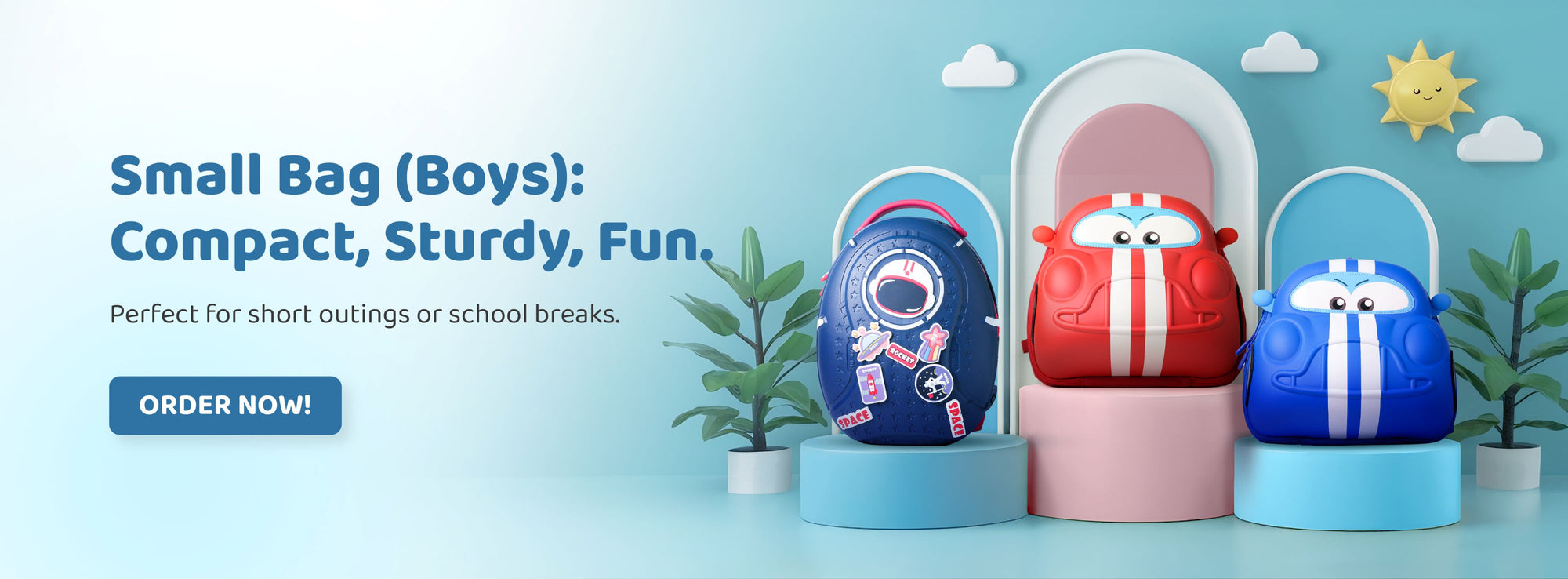 Our small school bags for boys are made from lightweight, water-resistant materials perfect for active kids. Spacious enough to fit snacks, toys, water bottles, and small accessories, they are compact yet roomy for everyday adventures.