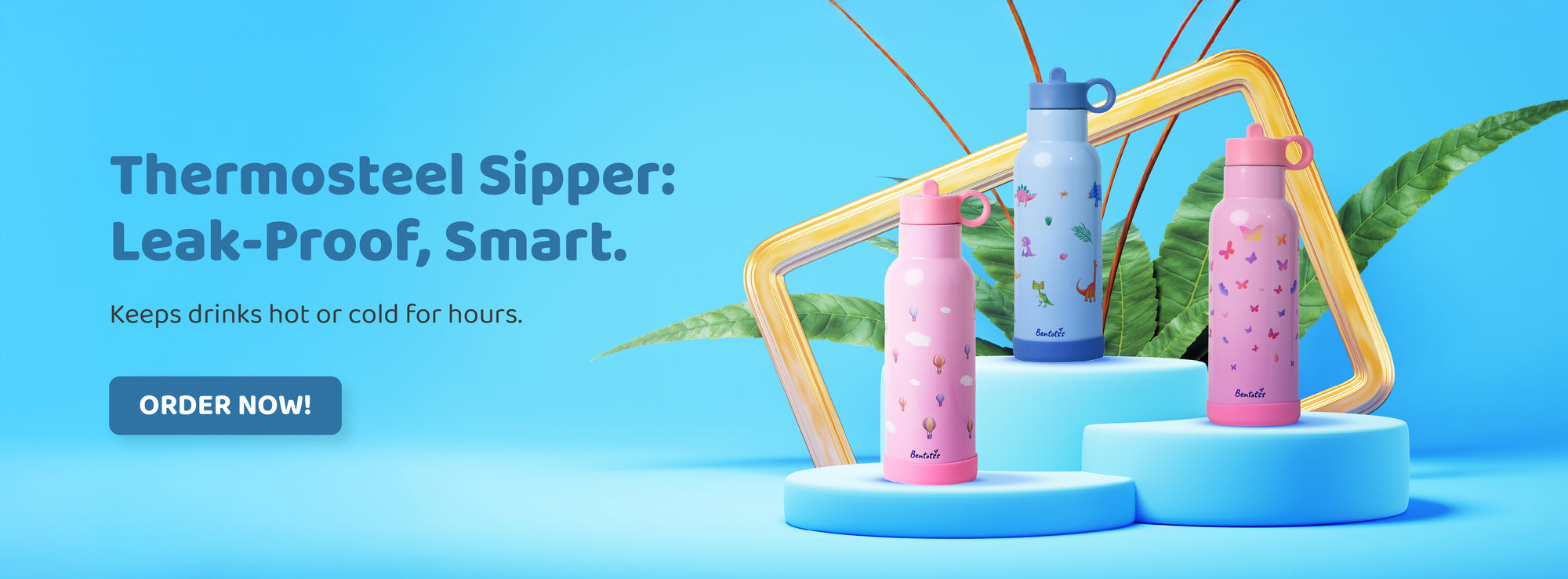 Crafted with premium food grade stainless steel and advanced insulation technology, Bentotss Thermosteel sippers keep liquids hot or cold for hours. With ergonomic designs, spill proof lids, and compact size, they are perfect for kids, adults, and fitness enthusiasts who need convenient, reliable hydration on the go.